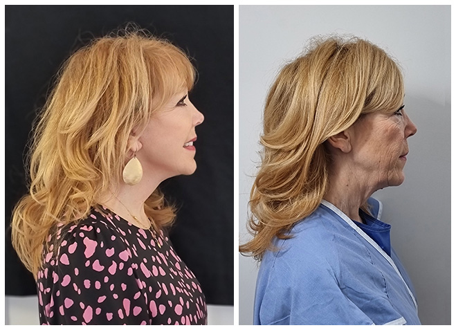 The SMAS plication lift introduced by a Swedish plastic surgeon in the early 1970s is a globally recognised facelift technique. After detaching the facial skin from the underlying facial tissue (fat, SMAS), sutures are placed strategically to lift the SMAS and the SMAS plicated. The facial ligaments are not released. The SMASectomy tissue was preserved which I find vital in treating an ageing face that generally loses its fat and thus volume. Surgeons have their specific preferences for the direction they plicate the SMAS to get the most rejuvenated outcome. Placing them more sideways doesn’t result in a natural and rejuvenated look since the ligaments which fixate the facial tissue at strategic places in the face will block tissue which lies medial to these ligaments from being pulled into the desired position. I find it is more helpful to strictly vertically pull the SMAS with sutures which run from the middle of the face near the nasolabial folds to the side right in front of the ear. The further the tissue has dropped, the bigger the “bite” of the needle/suture will need to be to attach the lifted SMAS along the zygomatic arch (cheekbone). In this way the SMAS and jowls could be lifted and at the same time volume built up over the midface. In a last step the skin is lifted and draped over the new, younger facial contour. I achieve amazing results with this technique. Since the SMAS plication lift works superficially on the SMAS instead of where the extended SMAS or deep plane facelifts work, the danger for facial nerve damage is much lower and this facelift technique is considered as safe.