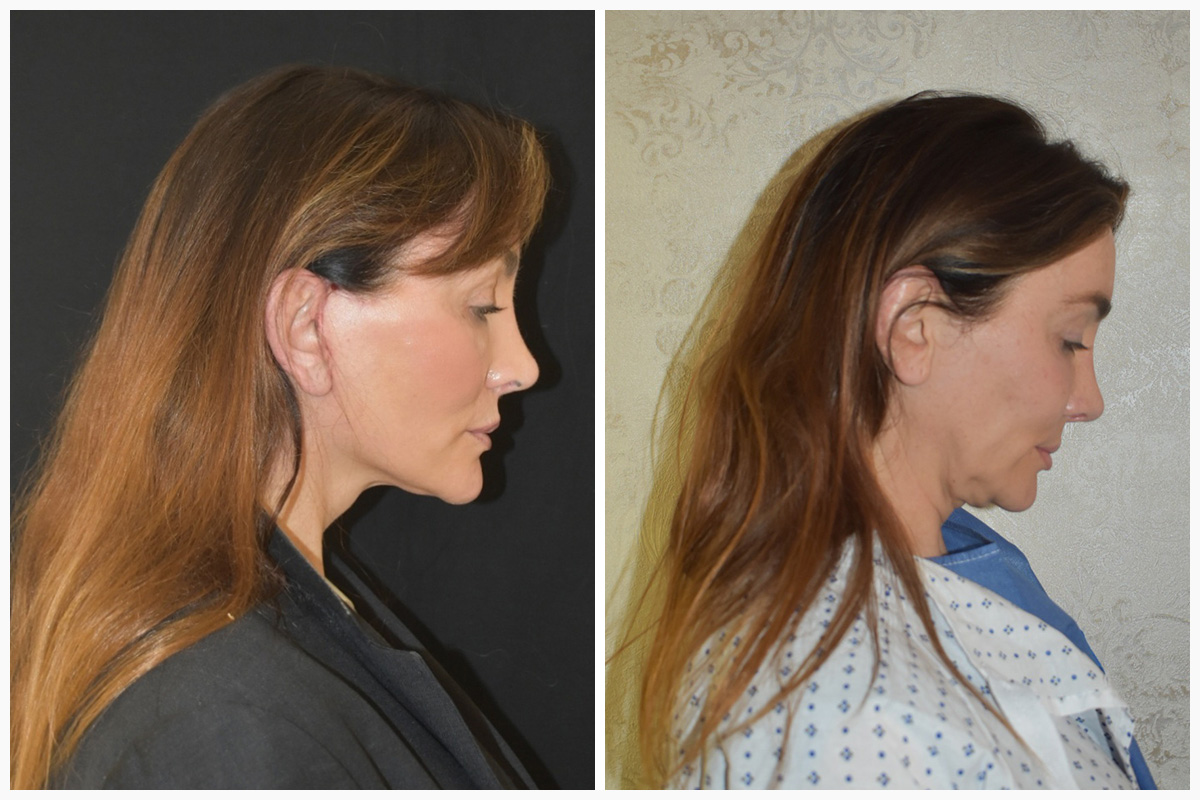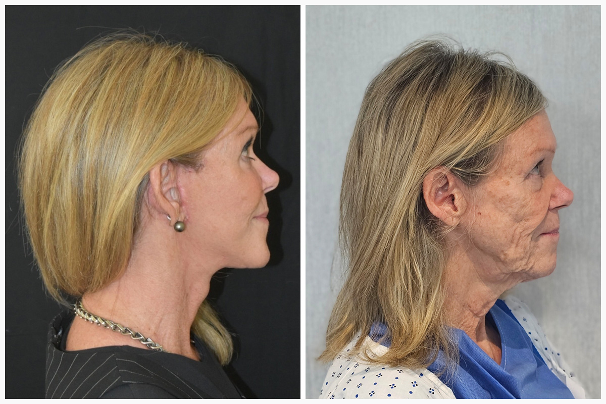 As explained in above, both the extended SMAS facelift, the deep plane facelift and my signature vertical dual-plane facelift dissect under the SMAS in the so-called “deep plane” of the face and release the facial ligaments. In this way the dropped facial tissue of the middle and lower face can be fully lifted when the flap is pulled up. Nasolabial folds, marionetted lines and jowls are drastically reduced and rejuvenated. The results of these facelifts are dramatic and natural at the same time.